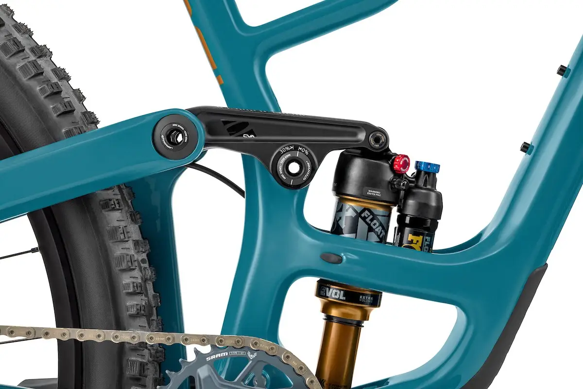 140mm de suspensão CVA com 150mm de curso no garfo.