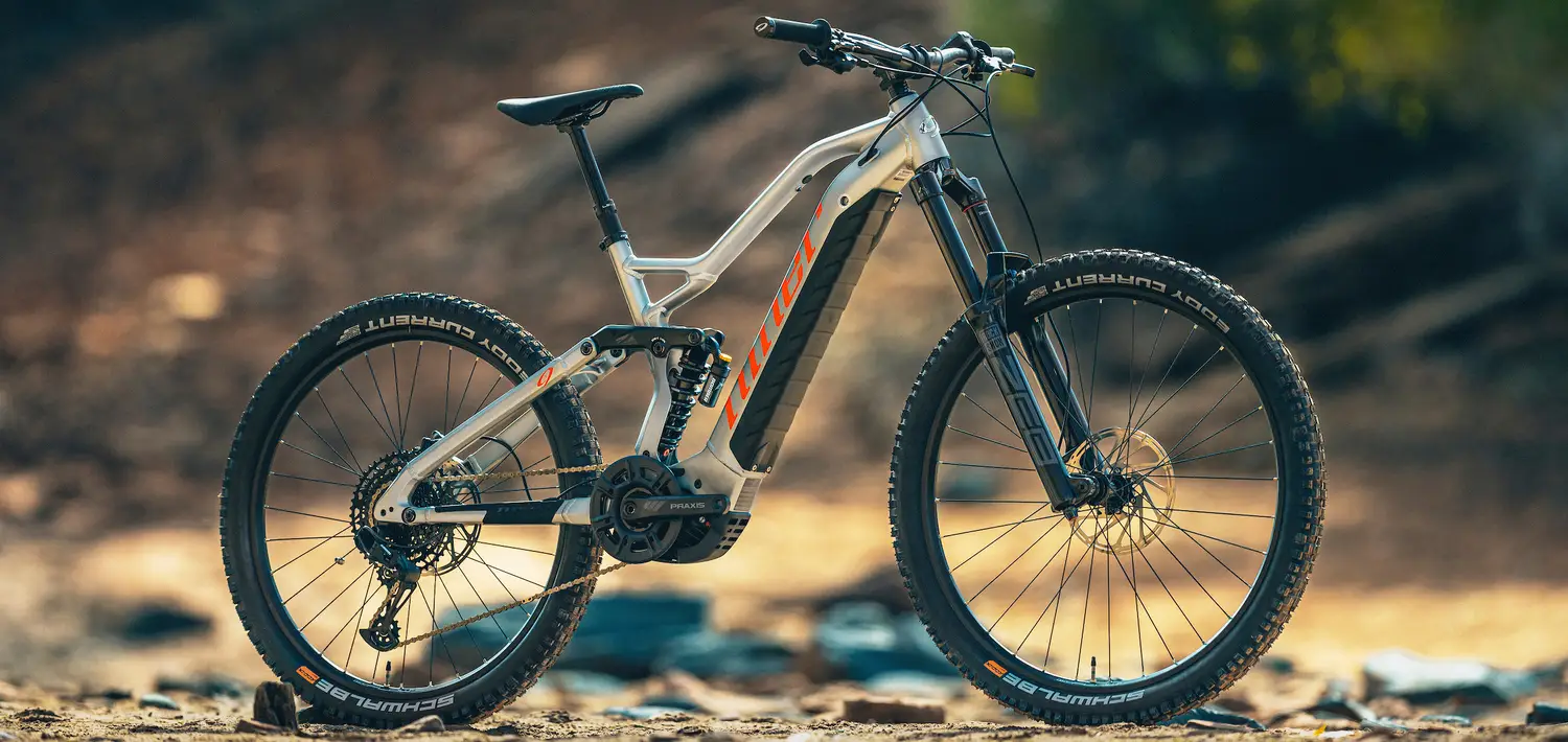 Rounding out our WFO e9 is a “mullet” style, 29er front/27.5+ rear wheel setup. The smaller rear wheel keeps the chainstays short for snappy trail manners and offers up massive traction.